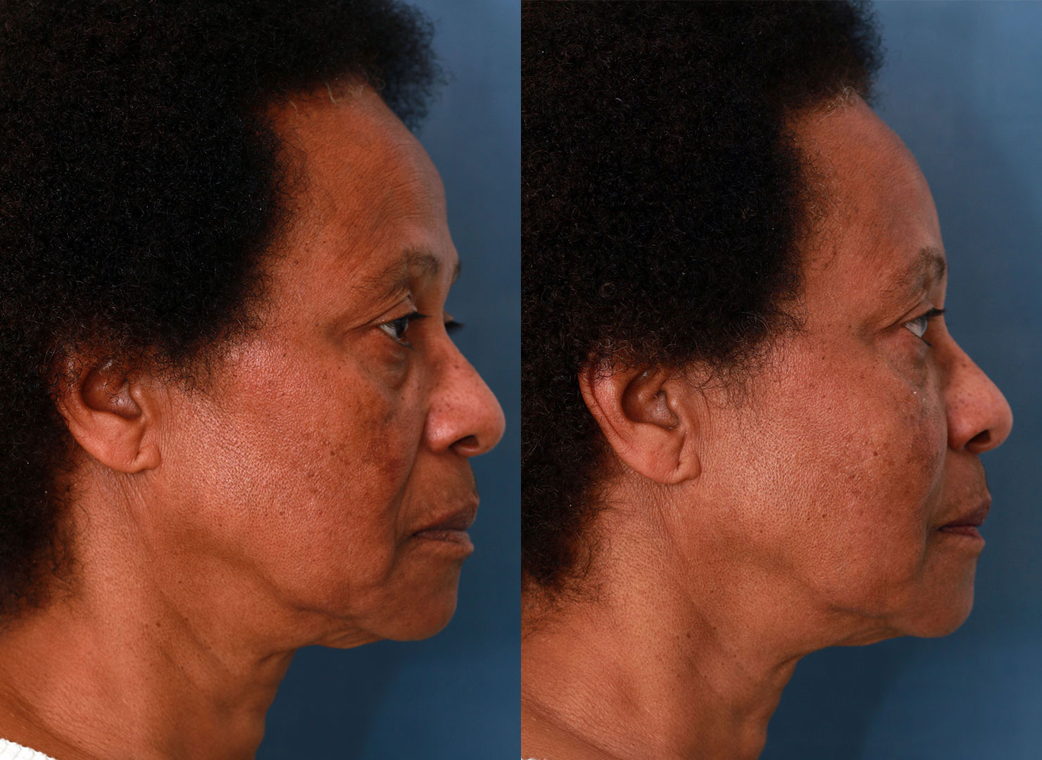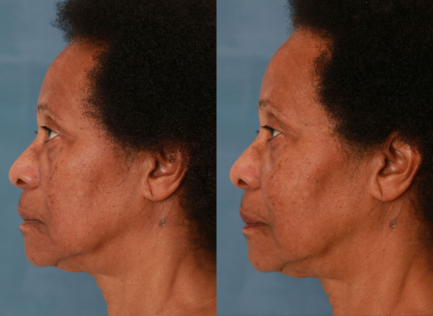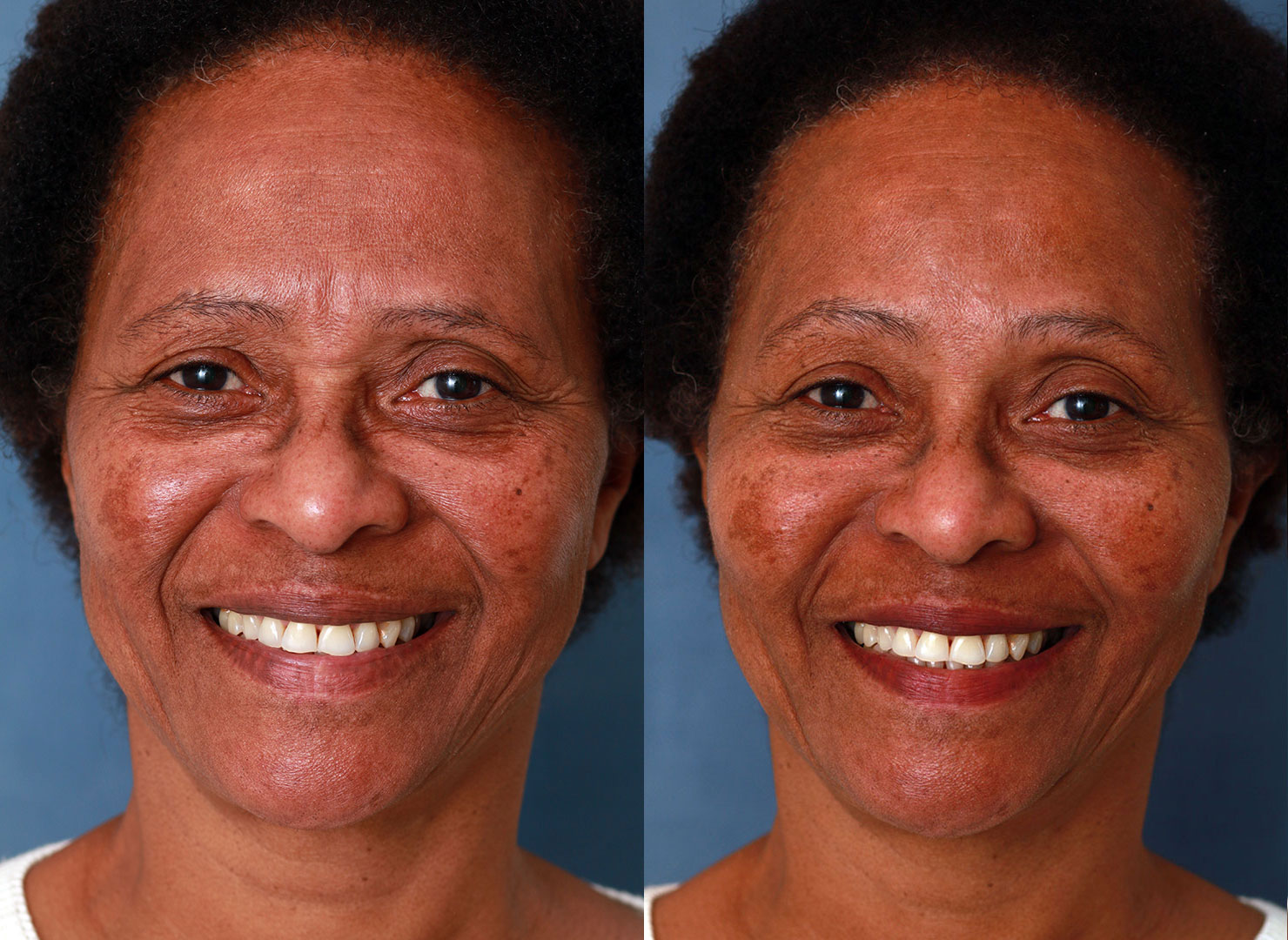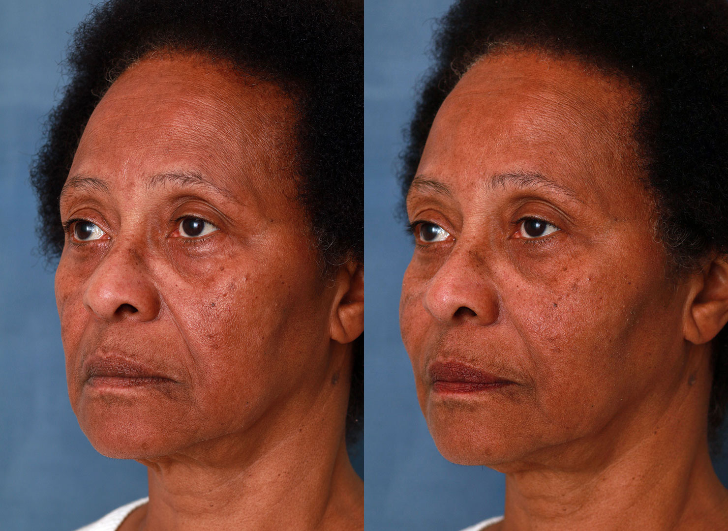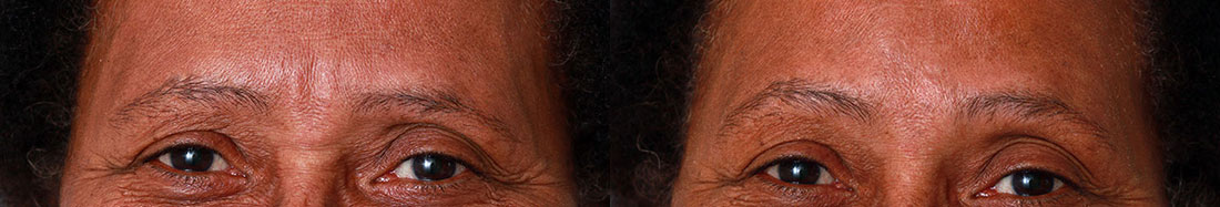 Door het verloren gegane wangvet in de bovenste helft van het gezicht weer aan te vullen, krijgt het gezicht weer een vitalere uitstraling. De wangen worden gelift, het evenwicht in volume tussen boven en beneden wordt hersteld, waardoor de tekenen van zwaartekracht en hiermee de vermoeide blik een stuk kleiner worden. Dit is vooral in de video van Florence erg goed te zien. - Fronsrimpels verzacht