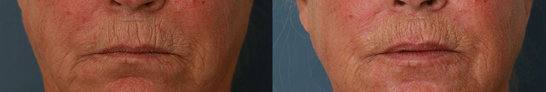 - De rokerslijntjes zijn oppervlakkig behandeld met een dunne variant van Restylane. Door de tijd zal dit resultaat nog verder verbeteren.
