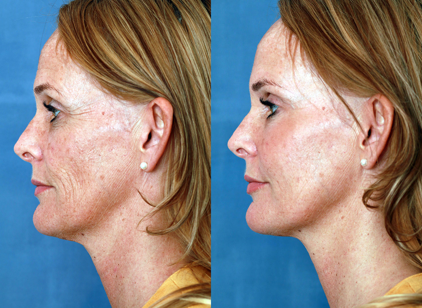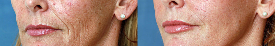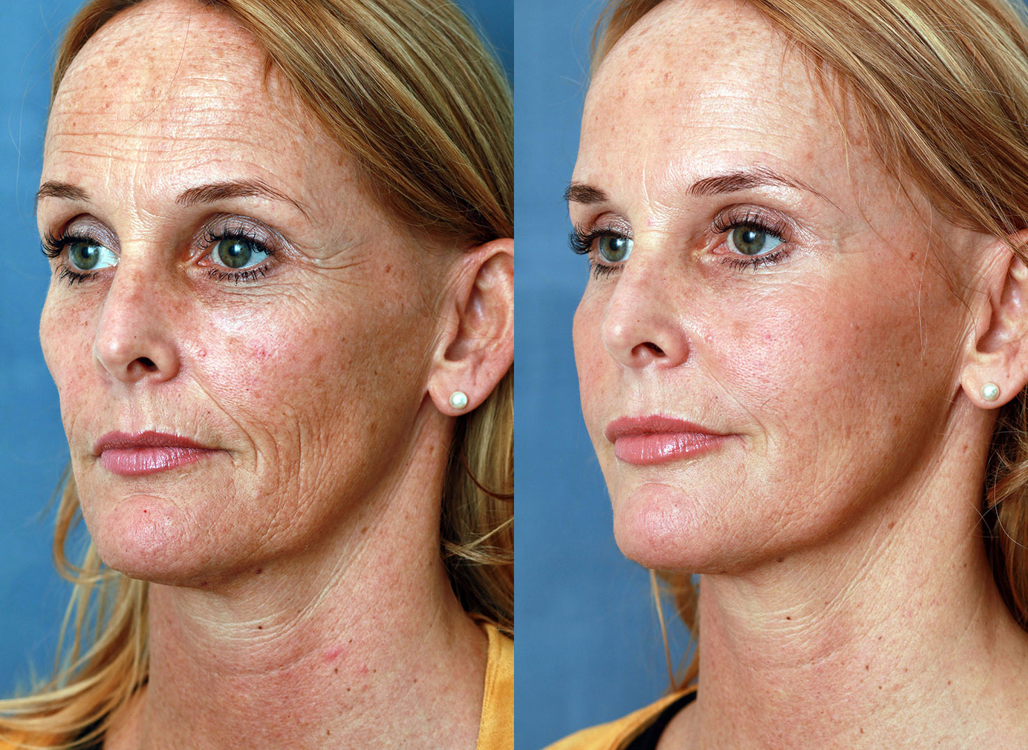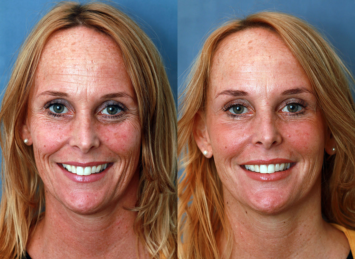 Restylane (hyaluronzuur filler) om de wangen weer wat volume te geven. De neuslippenlijn is opgevuld, de lijntjes rond de mond en de lippen zelf zijn verzacht.