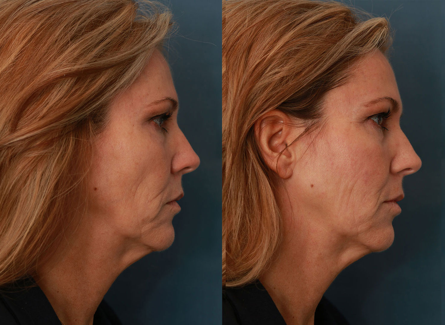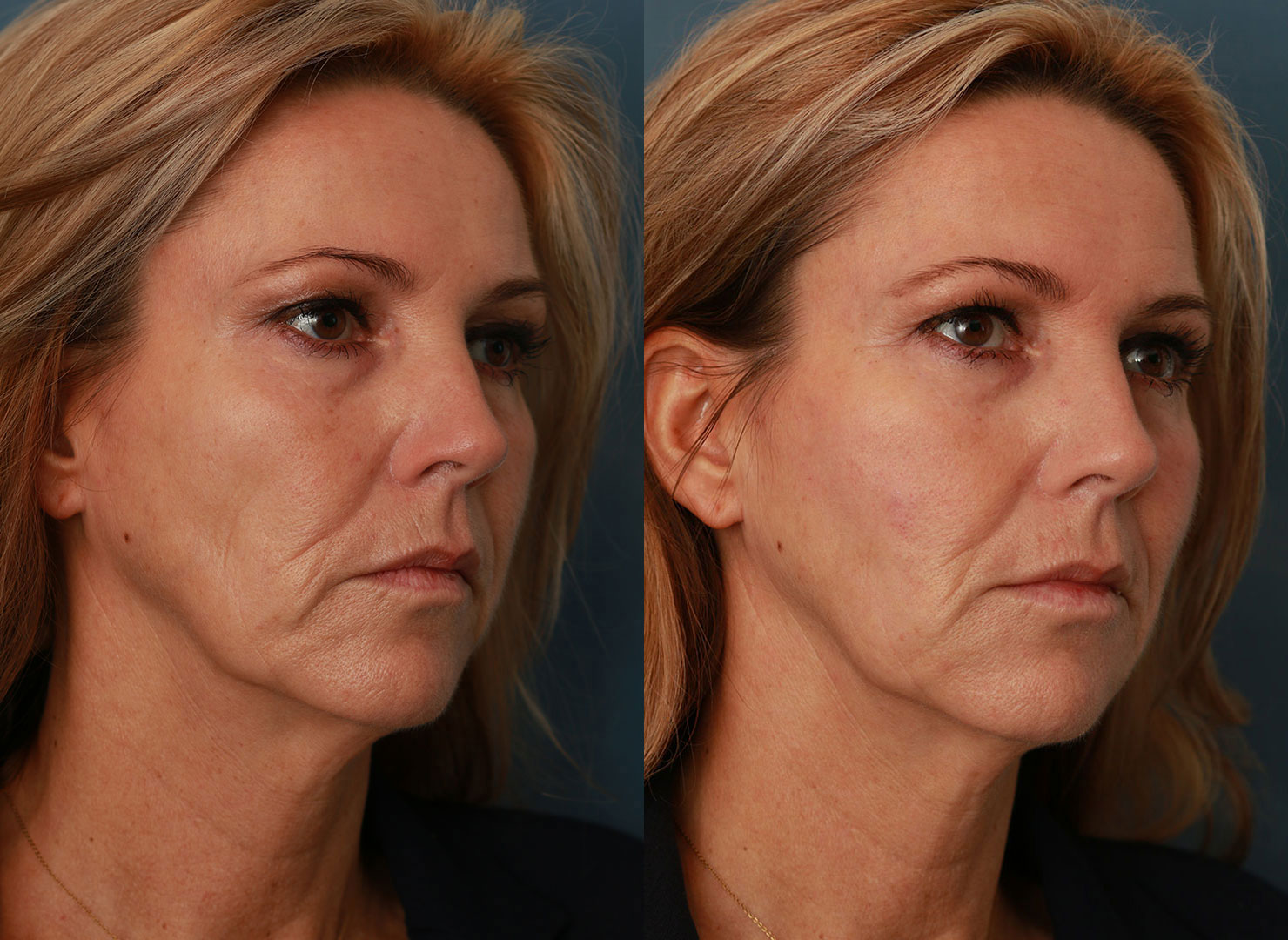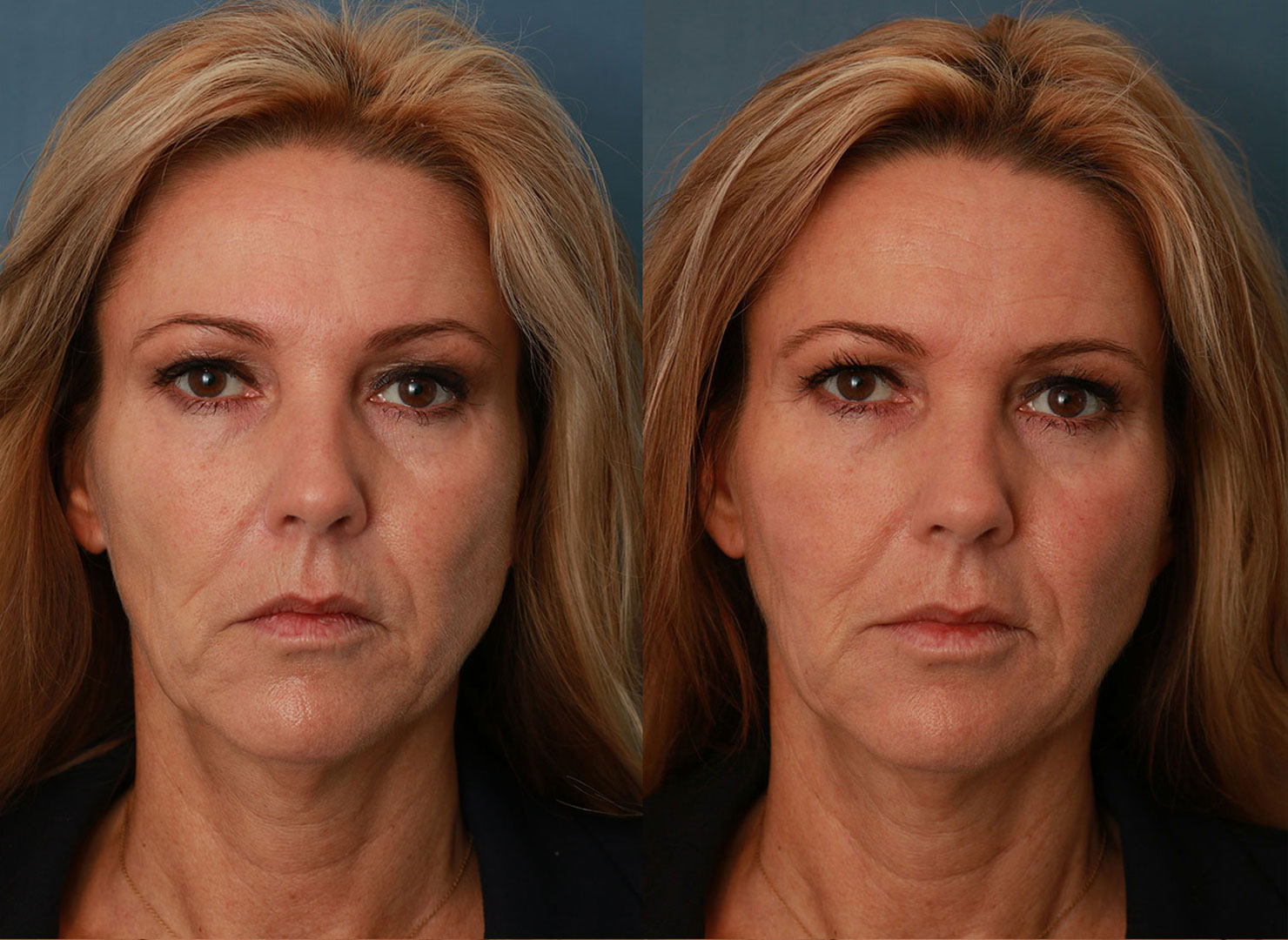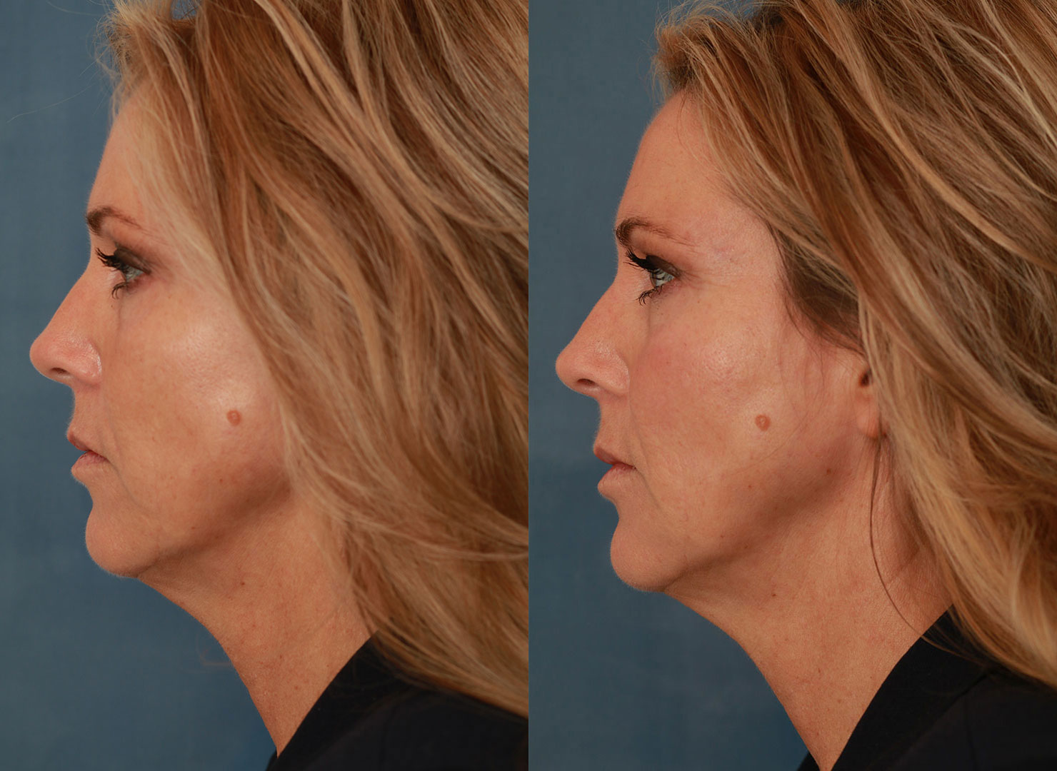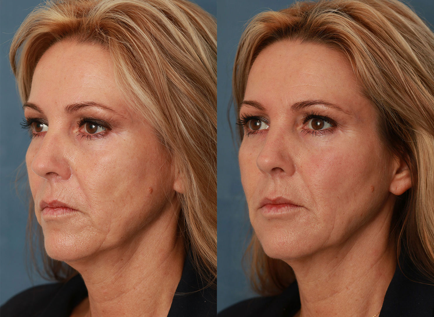 In ontspannen toestand heeft het gezicht van Petra een wat strenge uitstraling. Het hoofddoel van de behandeling was dan ook een verzachting hiervan. Het verouderingsproces bij Petra verloopt niet gelijk over haar gezicht. De bovenste helft heeft een jongere uitstraling dan de onderste helft. Dit wordt veroorzaakt door het volumeverlies dat in de onderste helft van het gezicht is opgetreden. Dit leidt tot ongewenste schaduwvorming en hiermee is haar gezicht niet in balans.